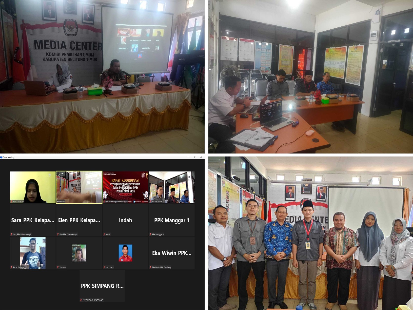 Manggar, Komisi Pemilihan Umum (KPU) Kabupaten Belitung Timur melaksanakan kegiatan Rapat Koordinasi Persiapan Menjelang Penetapan Daftar Pemilih Tetap (DPT) Pemilu 2024, Senin (19/06) bertempat di Kantor KPU Kabupaten Belitung Timur. Kegiatan tersebut bertujuan melakukan koordinasi dengan Bawaslu Kabupaten Belitung Timur dan Dinas Kependudukan dan Catatan Sipil Kabupaten Belitung Timur agar mendapatkan data pemilih Pemilu tahun 2024 yang berkualitas. Hadir di kegiatan yaitu Kabid Piak Dinas Kependudukan dan Catatan Sipil Belitung Timur (Jodi Wiranugraha, SE), Anggota Bawaslu Kabupaten Belitung Timur Koordinator Divisi Hukum, Pencegahan, Partisipasi Masyarakat dan Hubungan Masyarakat (Ihsan Jaya, S.Sos.I) dan Staf Sekretariat Bawaslu Kabupaten Belitung Timur (Dadang Surya Atmaja) serta Anggota PPK Bidang data pemilih se-Kabupaten Belitung Timur yang hadir secara daring dengan zoom meeting.