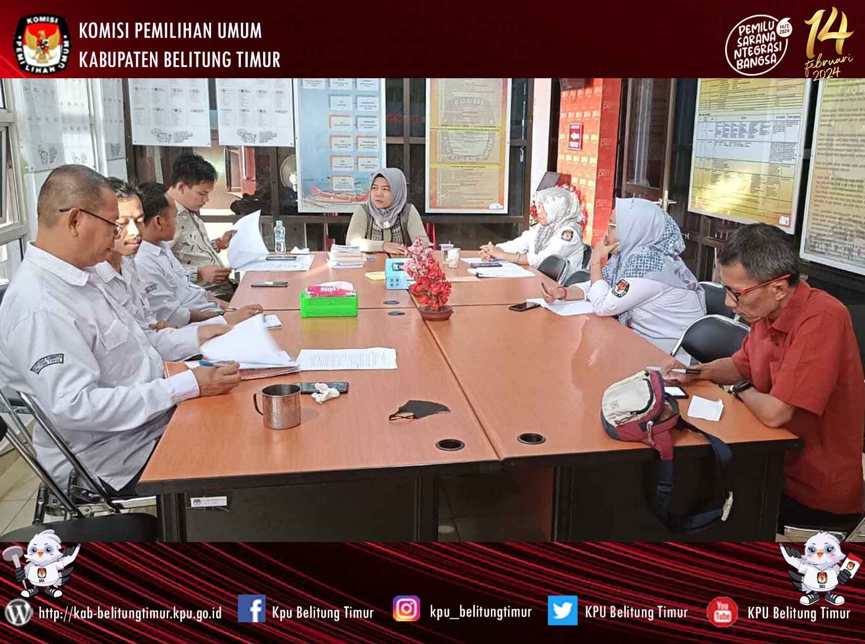 Manggar - Untuk mengakomodir Pemilih yang sudah terdaftar dalam Daftar Pemilih Tetap (DPT) tetapi pada hari pemungutan suara tidak bisa memilih di TPS dimana Pemilih tersebut berasal, Komisi Pemilihan Umum (KPU) Kabupaten Belitung Timur melaksanakan Rapat Pleno Rekapitulasi Daftar Pemilih Pindahan Tingkat Kabupaten Belitung Timur Periode Bulan Oktober Tahun 2023 untuk  Pemilihan Umum Tahun 2024, Senin (06/11/2023) bertempat di Kantor KPU Kabupaten Belitung Timur.   Rapat dihadiri oleh Ketua dan Anggota KPU Kabupaten Belitung Timur, Kasubbag dan Plt Kasubbag serta Staf Perencanaan, Data dan Informasi di lingkungan KPU Kabupaten Belitung Timur. Dalam rapat tersebut KPU Kabupaten Belitung Timur menetapkan Rekapitulasi Daftar Pemilih Pindahan Kabupaten Belitung Timur Periode bulan Oktober 2023 dengan Berita Acara Nomor 198/PL.01.2-BA/1906/3/2023  dengan rincian jumlah pemilih pindah masuk 120 pemilih yang tersebar di 61 TPS, 22 Desa dan 7 Kecamatan sedangkan jumlah pemilih pindah keluar 96 pemilih yang tersebar di 63 TPS, 28 Desa dan 7 Kecamatan.