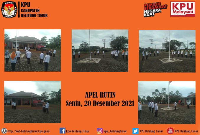 Pada rutinitas apel pagi 22 November 2021 bertindak selaku Pembina Apel Yuli Restuwardi, Anggota KPU Kabupaten Belitung Timur Divisi Teknis Penyelenggaraan. Dalam amanatnya Yuli Restuwardi mengajak para pegawai jajaran KPU Belitung Timur agar lebih memahami tugas pokoknya, termasuk pendelegasian tugas antara pimpinan dan staf Sekretariat.