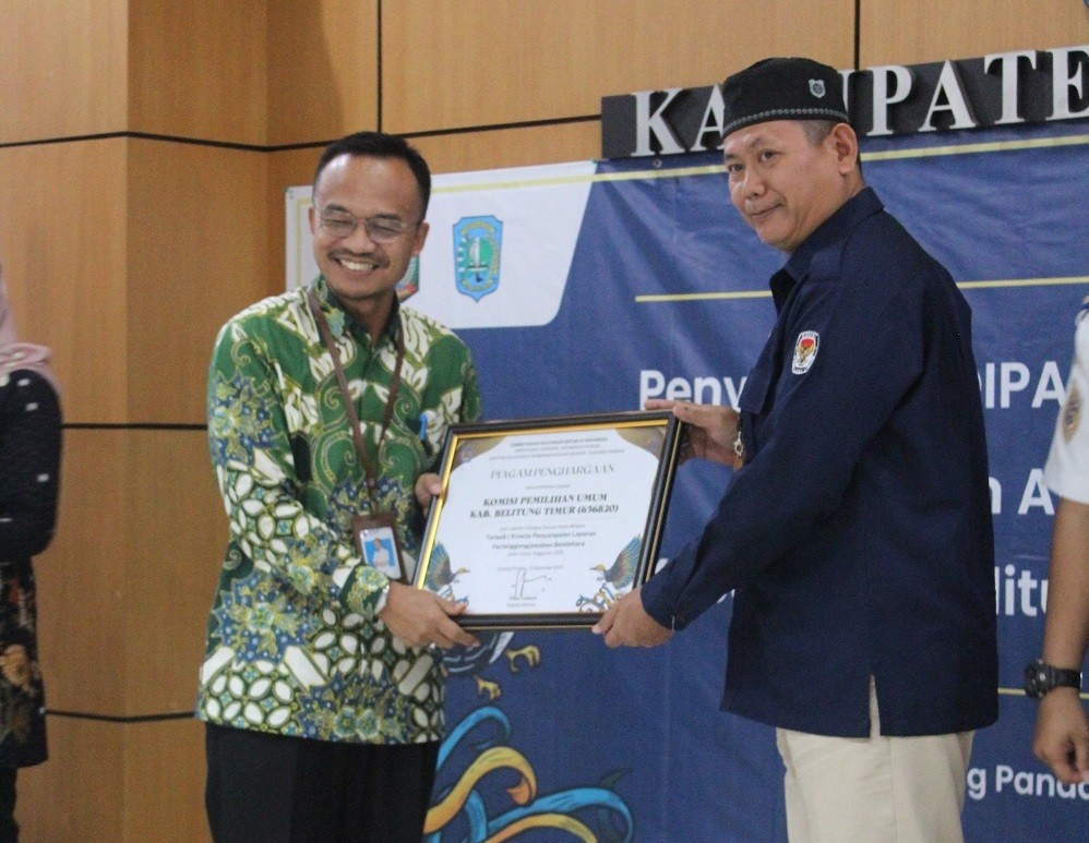 Sekretaris KPU Kabupaten Belitung Timur (Aguscik, SH) menerima penghargaan tersebut pada acara Penyerahan DIPA dan Buku Alokasi TKD Tahun Anggaran 2023 lingkup Kabupaten Belitung dan Kabupaten Belitung Timur, yang bertempat di Ruang Sidang Bupati Belitung.