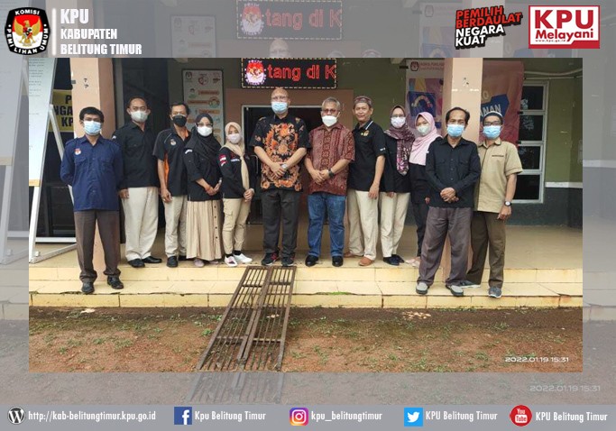 Rabu (19/01/2022) Komisi Pemilihan Umum (KPU) Kabupaten Belitung Timur mendapat kunjungan dari dari Ketua KPU RI Ilham Saputra dan Anggota KPU RI Arief Budiman.