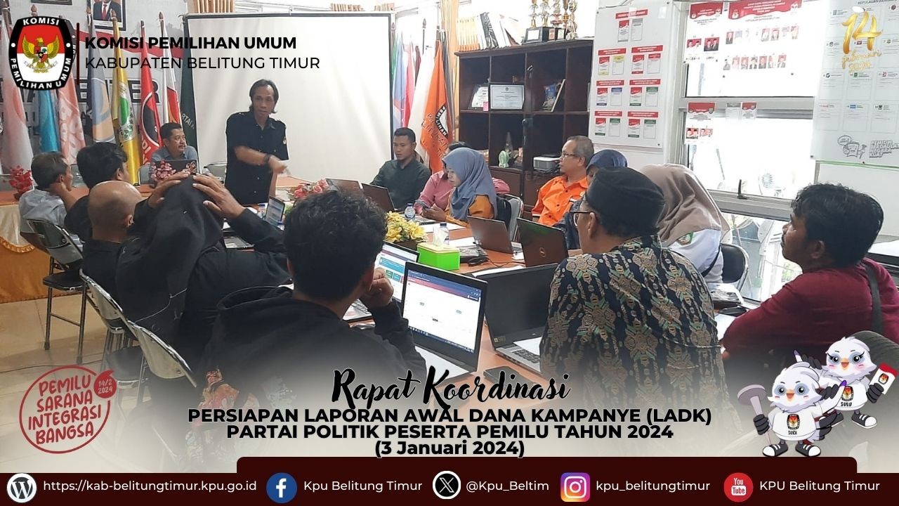 Rapat dihadiri oleh Ketua dan Anggota KPU Kabupaten Belitung Timur, Sekretaris, Kasubbag dan Plt Kasubbag serta Staf Perencanaan, Data dan Informasi di lingkungan KPU Kabupaten Belitung Timur.