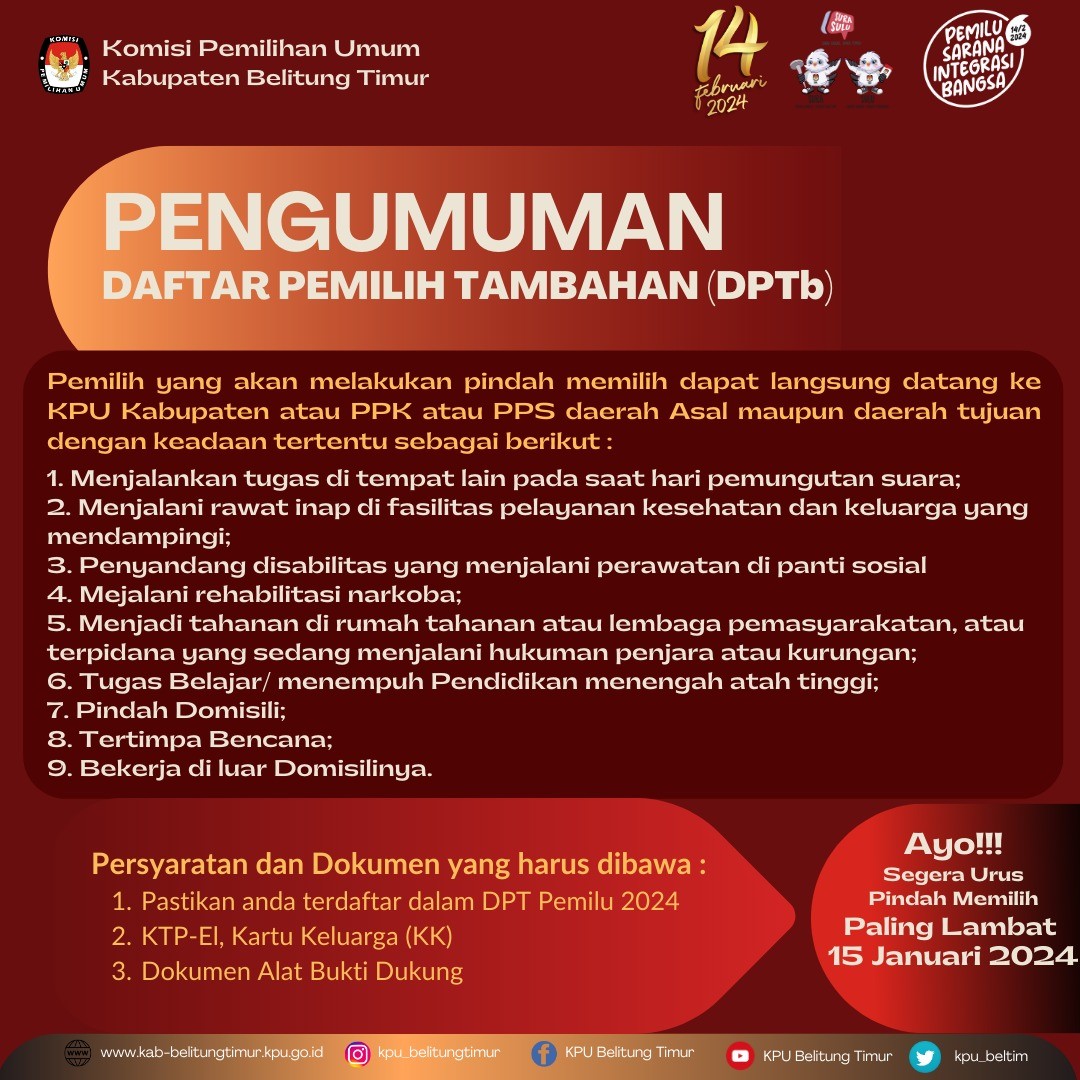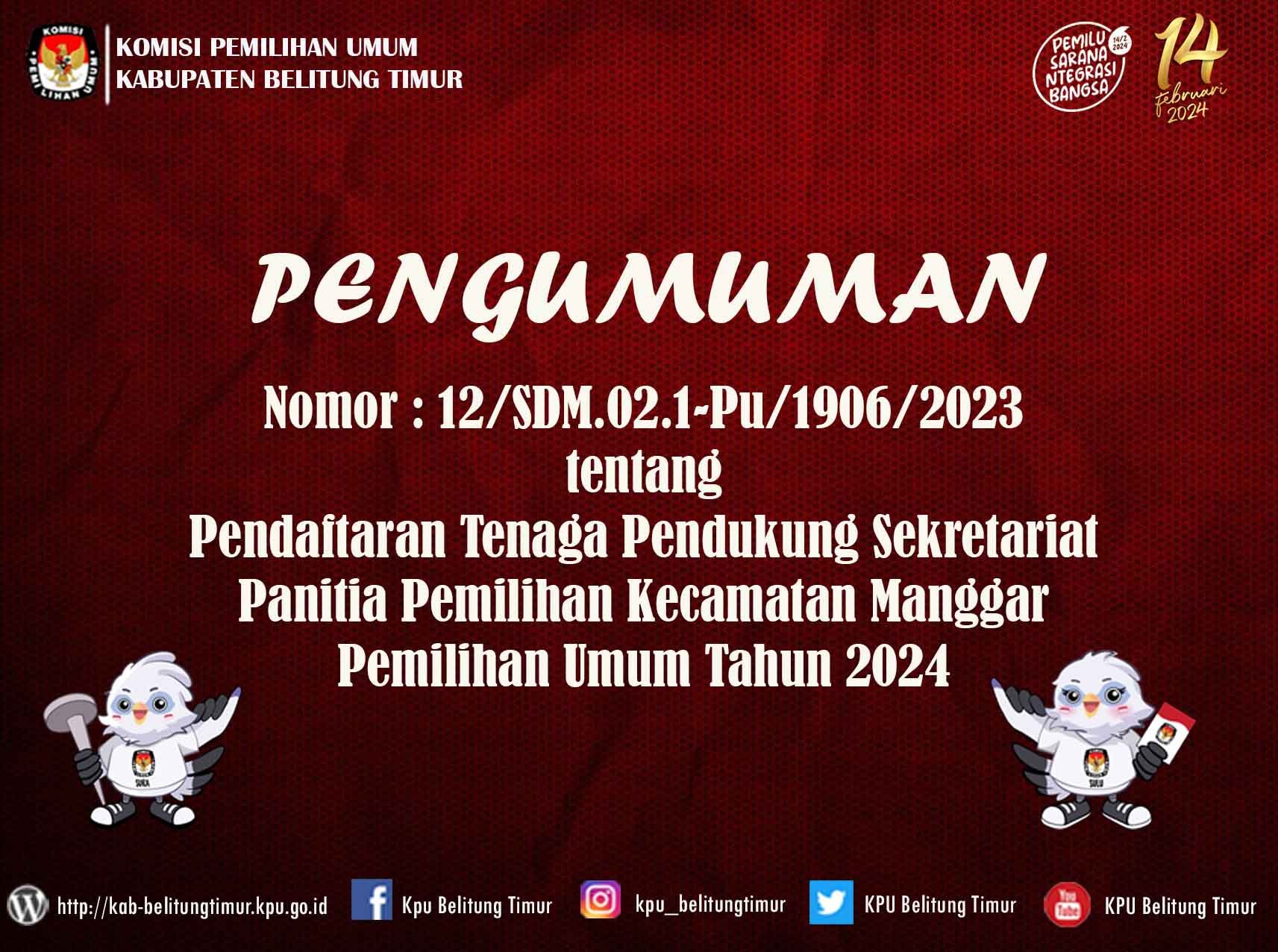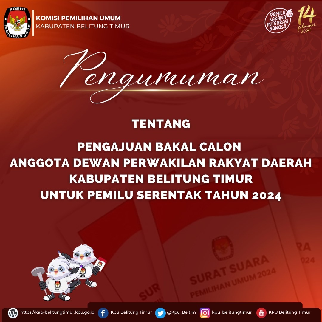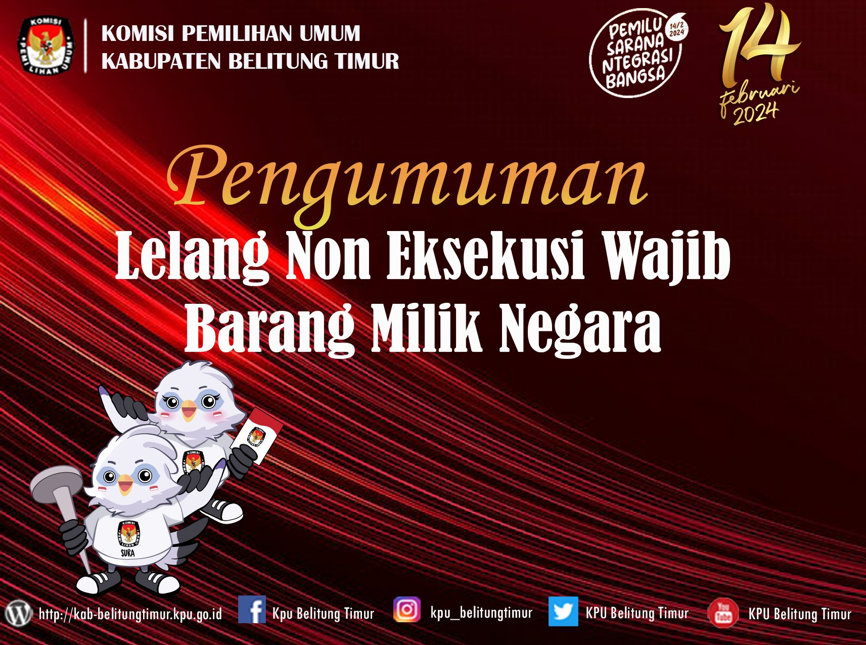 Manggar, Komisi Pemilihan Umum (KPU) Kabupaten Belitung Timur akan melakukan Penjualan di muka umum (lelang) Barang Milik Negara. Adapun Pengumuman bisa di download pada link berikut :