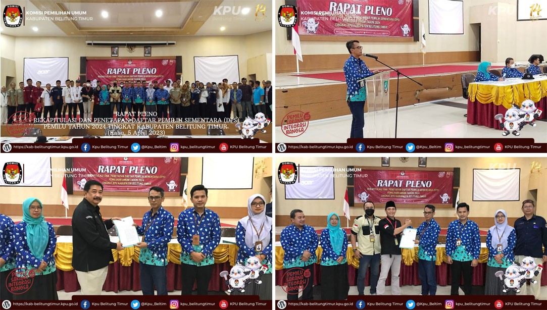 Manggar, Komisi Pemilihan Umum (KPU) Kabupaten Belitung Timur melaksanakan Rapat Pleno Terbuka Rekapitulasi Hasil Perbaikan Daftar Pemilih Sementara (DPS) tingkat Kabupaten Belitung Timur untuk Pemilu 2024, Kamis (11/05) bertempat di Hotel Guest Manggar.