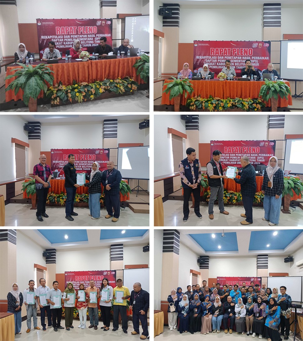 Dalam Rapat tersebut, KPU Kabupaten Belitung Timur menetapkan Rekapitulasi Hasil Perbaikan Daftar Pemilih Sementara (DPS) Kabupaten sebanyak 95977 pemilih dengan rincian pemilih laki-laki berjumlah 49142 pemilih dan perempuan berjumlah 46835 pemilih yang tersebar di 363 TPS, 39 Desa dan 7 Kecamatan.