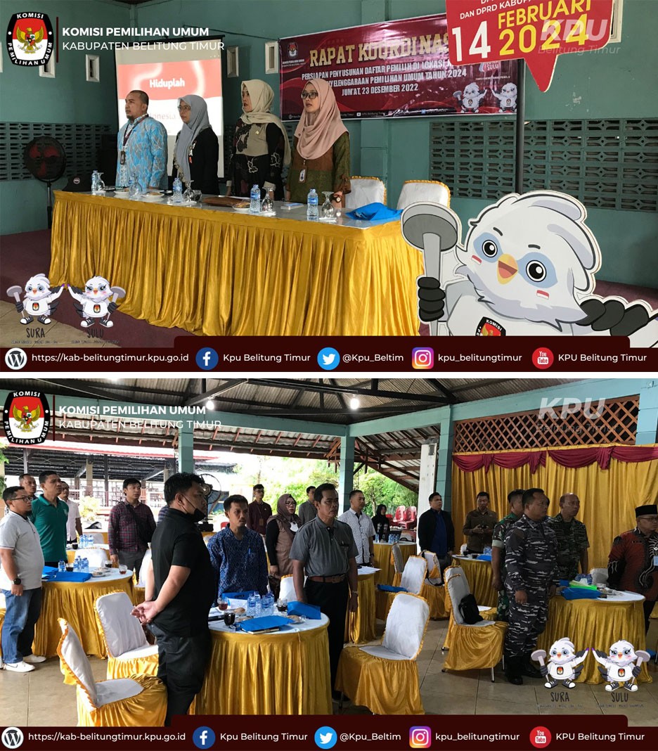 Manggar, Komisi Pemilihan Umum (KPU) Kabupaten Belitung Timur melaksanakan Rapat koordinasi persiapan penyusunan daftar pemilih di lokasi khusus yang bertempat di Cafe Fega Manggar, Jum'at (23/12).