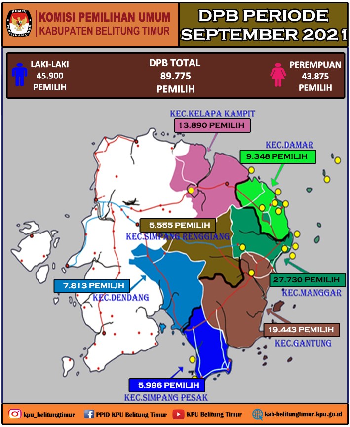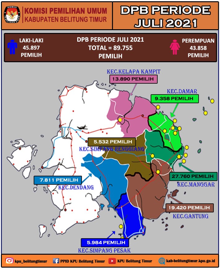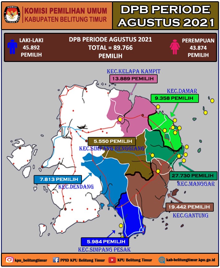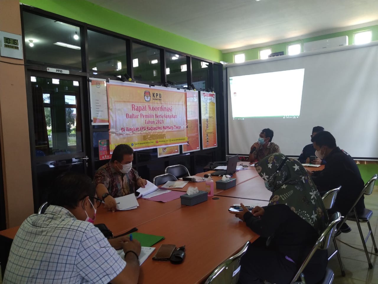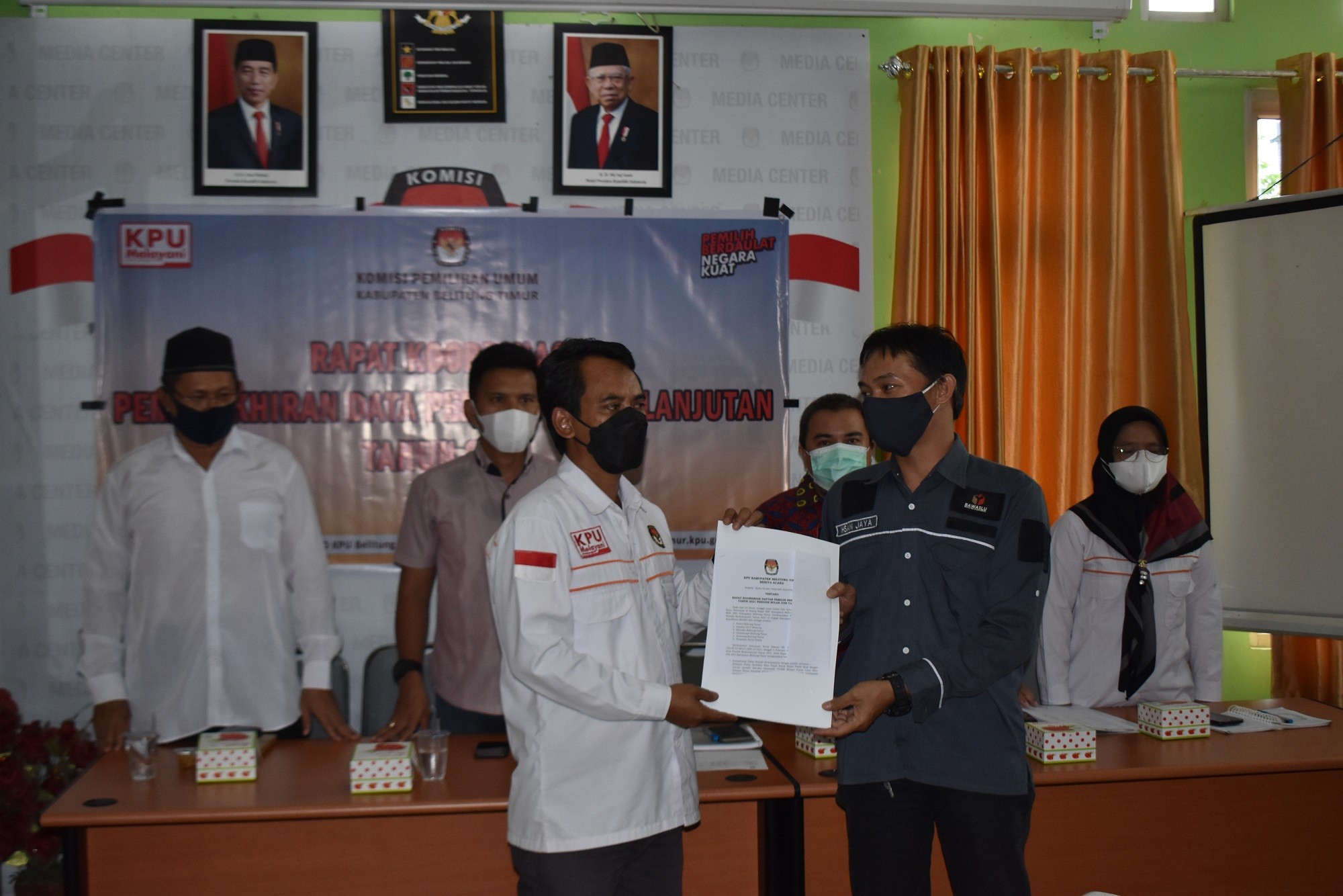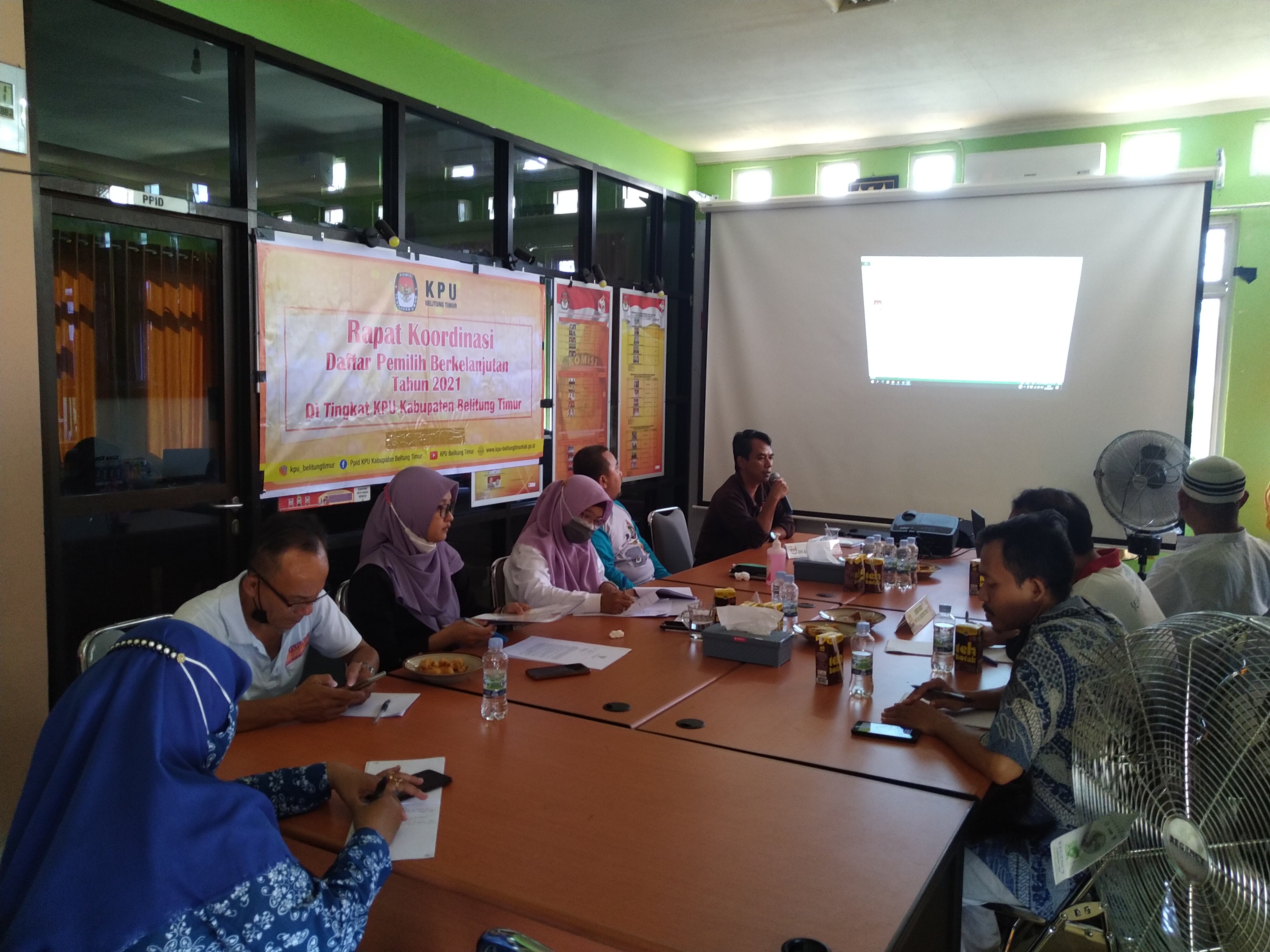kab-belitungtimur.kpu.go.id, Manggar, Komisi Pemilihan Umum (KPU) Kabupaten Belitung Timur Melaksanakan Rapat Koordinasi Data Pemilih Berkelanjutan Periode Bulan Agustus Tahun 2021 secara internal bertempat di Ruang Rapat KPU Belitung Timur, Jumat (03/9). Rapat Koordinasi ini dilaksanakan secara internal diikuti oleh Ketua dan Anggota KPU Kabupaten Belitung Timur, Sekretaris, Kasubbag, Admin dan Operator Sidalih KPU Kabupaten Belitung Timur. Kegiatan ini dilaksanakan oleh KPU Kabupaten Belitung Timur dengan memperhatikan Protokol Kesehatan Covid-19 dengan menjaga jarak serta menggunakan masker bagi seluruh peserta rapat yang hadir. Berdasarkan surat Komisi Pemilihan Umum Republik Indonesia nomor 366/PL.02-SD/01/KPU/IV/2021 tanggal 21 April 2021 perihal Perubahan Surat Ketua KPU RI Nomor 132/PL.02-SD/01/KPU/II/2021 perihal Pemutakhiran Data Pemilih Berkelanjutan Tahun 2021. Sehubungan dengan hal tersebut diatas KPU Kebupaten Belitung Timur dengan ini menyampaikan salinan hasil rekapitulasi Daftar Pemilih Berkelanjutan serta menyampaikan Daftar Pemilih Berkelanjutan yang mengalami perubahan periode bulan Agustus byname by polling station. Berita Acara Rapat Koordinasi Daftar Pemilih Berkelanjutan Periode Bulan Agustus Tahun 2021 Beserta Lampirannya dapat di unduh pada link dibawah ini: Berita Acara Rapat Koordinasi Daftar Pemilih Berkelanjutan Periode Agustus PENGUMUMAN AGUSTUS – Formulir Model A.1-DPB BY NAME BY POLLING STATION AGUSTUS